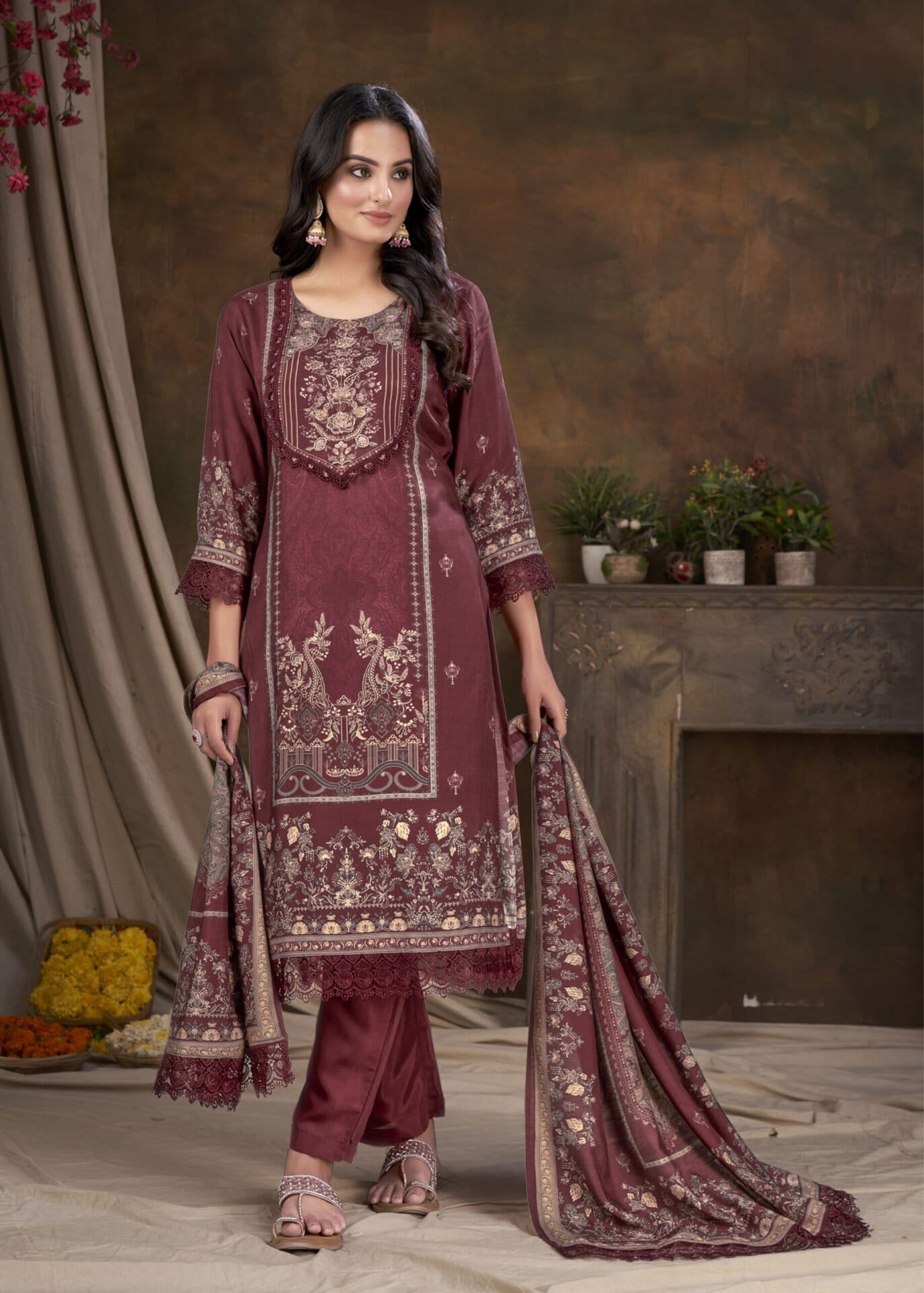 Women Muslin Digital Print Embroidered Work Salwar Kameez